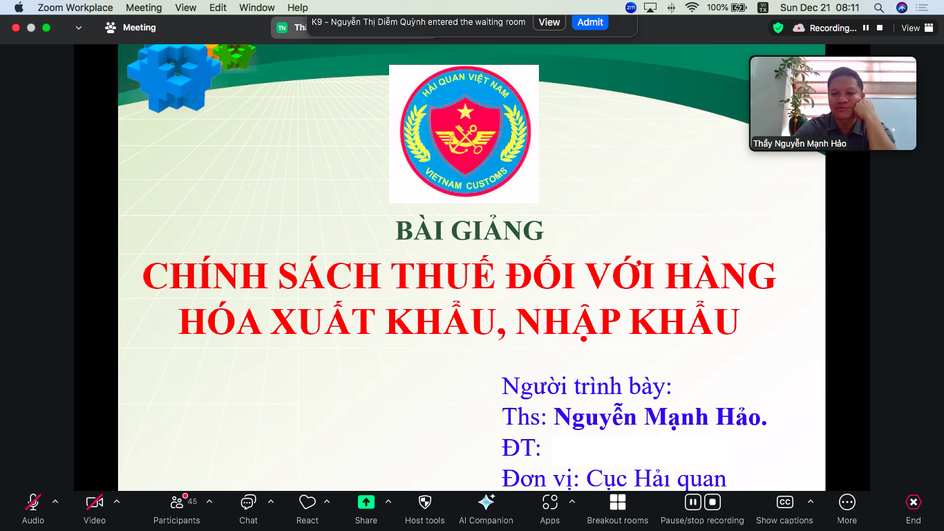 3. GIẢNG VIÊN : Khóa học sẽ do các chuyên gia của Cục Hải quan, Chi cục Hải quan các tỉnh, thành phố, Trường Hải quan Việt Nam, Học viện Tài chính giảng dạy.